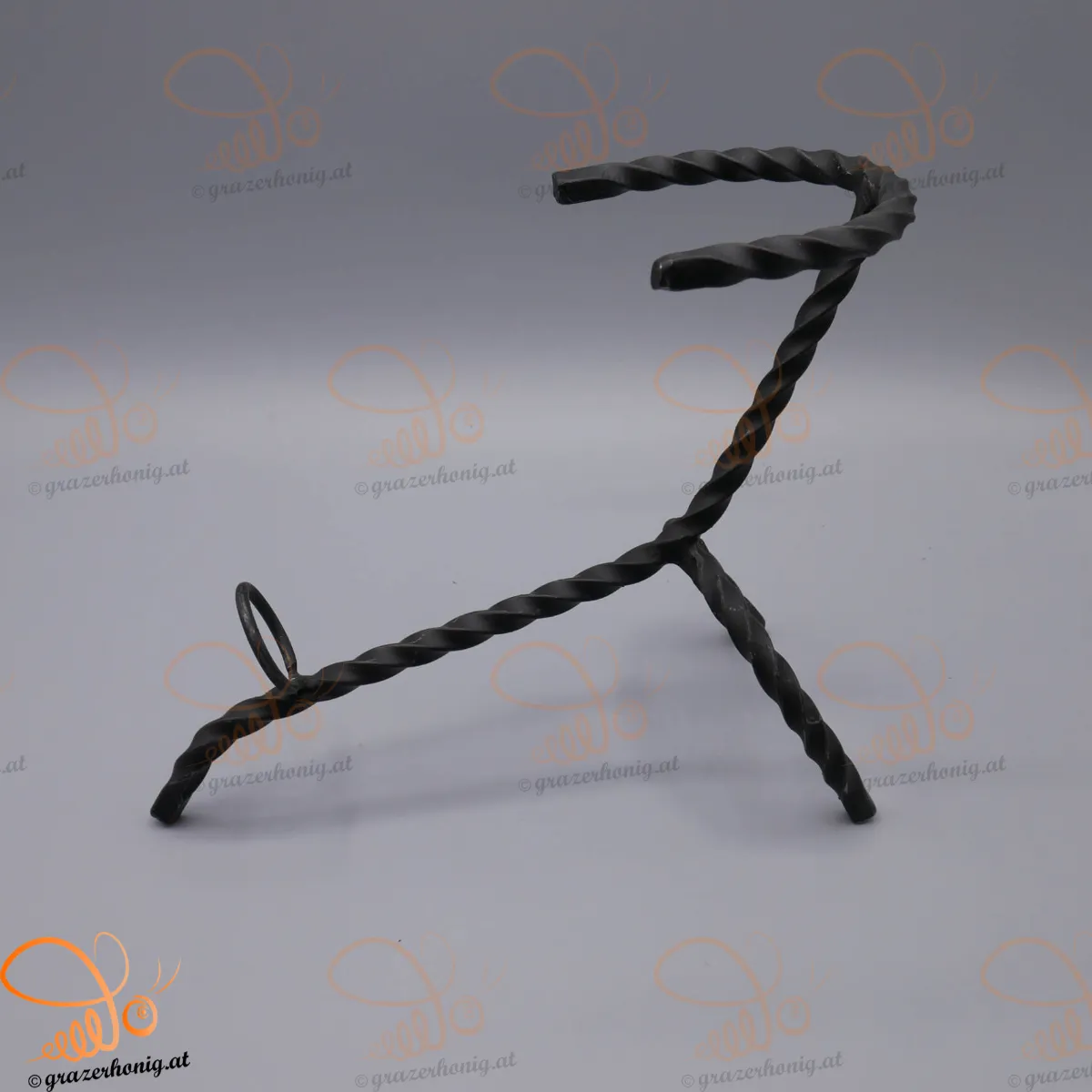 Der Ständer besteht aus massivem Schmiedeeisen, ist dunkel lackiert und wurde von Hand gebogen und gehämmert. Er passt sich optimal an die natürliche Form deines Trinkhorns an und sorgt für einen sicheren, kippfreien Stand – ideal zur Aufbewahrung oder Dekoration.